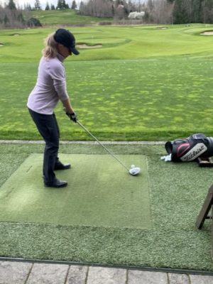 Macarena: At first, the thought of going to a driving range terrified me - from what I could tell they were male-dominated warm-up areas, where the high level of testosterone manifested itself in rows of men using their drivers to get rid of all the tensions of the day. And the sense that they were all trying to out-drive their neighbor. Consequently, I would often go to the furthest spot away I could find, and take out a variety of clubs to practice with, as instructed by my golf pro. I would then start my warm-up routine – as I am an older player, my muscles tend to be a bit stiff first thing, so my coach encouraged me to warm up my body by doing some stretches and body twists before picking up a club. Holding your arms crossed in front of your chest and practicing a hip rotation may seem very strange at first, but it does loosen up the spine, and thus far has eliminated any trips to the chiropractor! I then use my shorter clubs to practice my set-up and swing, before actually hitting any balls. And if I remember, I try to use some alignment sticks on the ground, as I am working on my direction as well as length of shots.