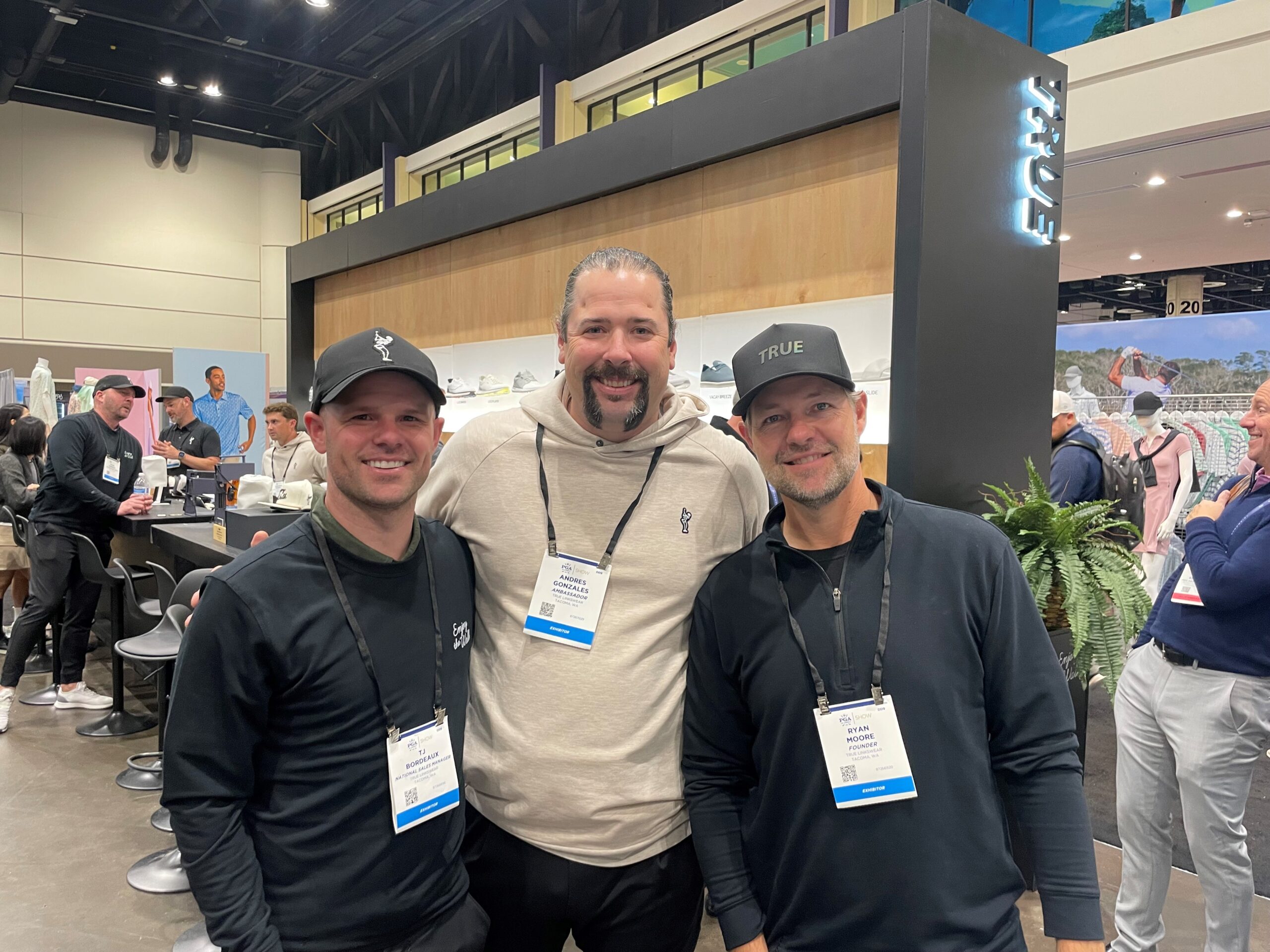 TRUE has gathered under its tent a number of Northwest players and friends, and they regularly exhibit their brand at the annual PGA Show in Orlando (pictured). Left to right are TJ Bordeaux, sales director, who grew up in University Place, Wash. and played on the mini tours; Andres Gonzales, brand ambassador, of Olympia, Wash., who grew up playing with Ryan and also briefly made it onto the PGA Tour; and Ryan, who in 2004 was the No. 1-ranked amateur in the world, before going on to a successful career on the PGA Tour.