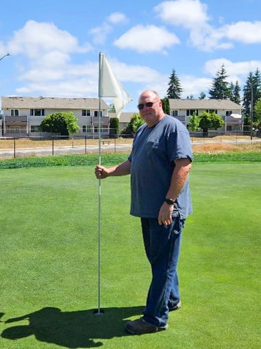 Tahoma Valley Golf Course in Yelm, and he worked his way up the ranks. And by ranks, we mean the military ranks. Meet Vince Hartney, native Pacific Northwesterner, originally from Sandy, Ore. Hartney spent 30 years in military service within the Command & Control career field. He launched armed fighters out of Portland and managed the “air picture” for NORAD, all from windowless buildings and aircraft. Vince retired from the military, but like so many, found sitting at home or just pursuing hobbies wasn’t enough. “I started mowing greens and troubleshooting the irrigation system at Tahoma 2020.” In March of this year, the opportunity to manage the course and lead the crew was offered to Vince. As the new superintendent he inherited a 6-person crew, four of whom were also military service retirees. The other two were a ski fanatic and a college student. “Being at work for us is like having a day of quality ‘guy time,’” Hartney says. “I’m the only member of my crew that doesn’t golf, but I do love some healthy greens!” Hartney is a new member of the WWGCSA, thanks to a referral from Jackie Klein of Walrath Landscape Supply. He looks forward to reaching out to fellow members to learn more tricks of the trade and broaden his scope of “guy time” with people who love greens like he does.