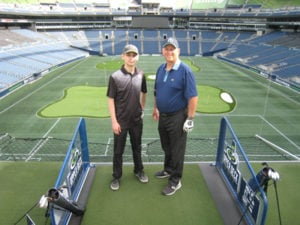 His son Nick Huber, now 22, played with him at a hundred or so of the courses on the journey. Each man secured a hole-in-one – Nick on No. 4 at Cedars on Salmon Creek, Paul on No. 4 at Desert Canyon.