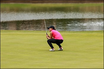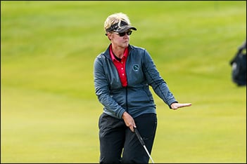 Admitting the rain threw her off her game, Monaco kept a positive mindset, knowing there was time to make up ground. She did exactly that, with birdies on Nos. 6, 7 and 9, and a clutch par save on No. 8 after getting relief following a wayward tee shot.