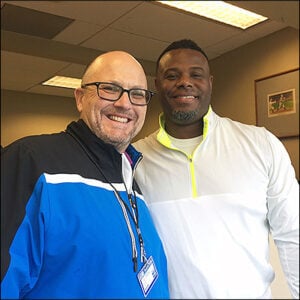 Josh Kerns and Ken Griffey Jr. were able to catch up on their golf games during the interview at Safeco Field.