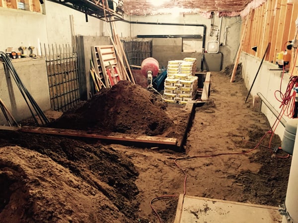 “It took about a month of digging, and all the concrete was mixed by hand,” Patrick says. “I have a small crew of carpenters that do concrete work, some curb and gutter sidewalks, driveways, things like that. They had some time off one spring and I said, ‘Hey, let's go do this in my house.’”